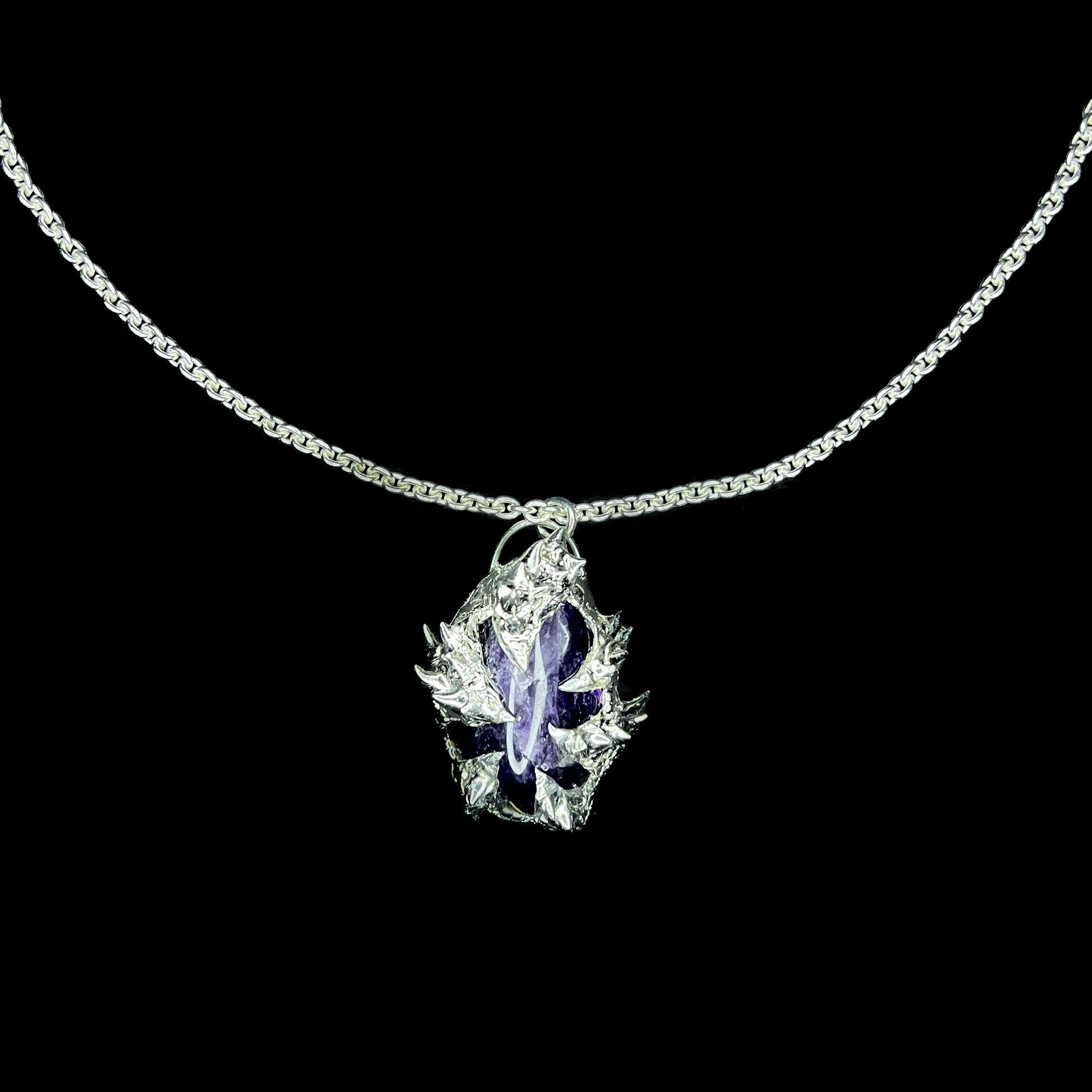 Dragon Scale Amethyst Pendant - Amethyst Spiked Necklace